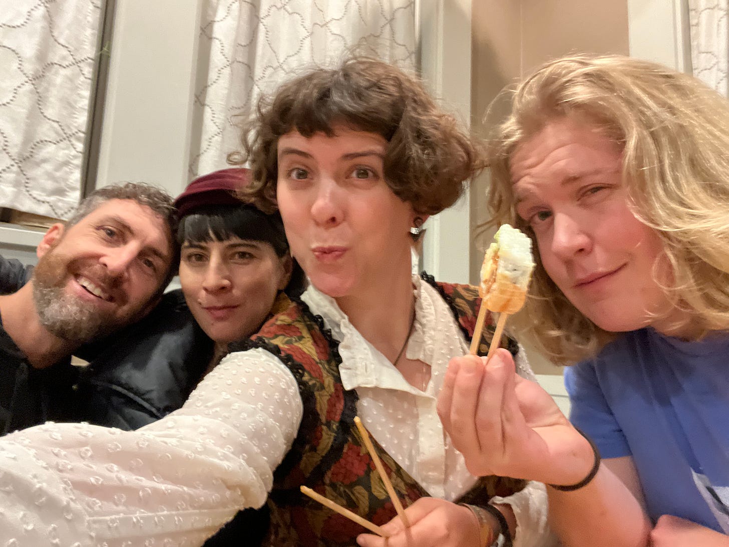 Saturday I met Will at a Park n Ride in Tumwater, WA, and he drove me down to Portland where we played a sweet indoor house show at my new friend Julie’s house. It was charming and there was a big ole’ tunesy-singy-world music jam afterward that lit up my lights. Julie plays a bunch of instruments and speaks a bunch of languages, and we had a how-many-songs-do-we-know-in-other-languages sing-off. It made me miss Ethnos, the international folk music ensembles I attended in North Carolina and India.